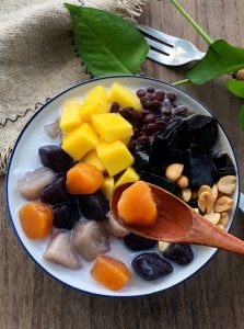 Grass Jelly is a magnificently invigorating jelly with a smooth surface. It is a portion of vegan food.